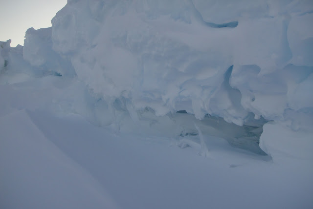 I could also see the weather rolling in acrossed the open ice. It was beautiful; swirling around and creeping my way. Almost like watching the fog coming in on a lake, or a warm rain in Florida here to cool me off.