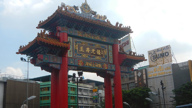 I arrived at my stop and disembarked. So far, so good. The people at the hotel told me it was about a 10 minute walk from the pier to the temple. It had rained and the humidity was quickly rising. I had dressed once again in my "church clothes" which I was regretting already. 45 minutes into my 10 minute walk I decided that I could now add Chinatown to the ever growing list of places I got lost in Bangkok. I stopped and got directions, not that they really helped. Of course I knew I was getting close when I was stopped and told that the temple was closed for private ceremony....blah blah blah...tour of city....blah blah...Obama is good yeah?....blah....I just walked away. Finally I found the temple. Now, before you have a laugh at my expense, stop. Even though these temples are massive and the spires are very tall; when you are standing next to a building be it a high-rise or simple 4 story structure; you just can't see beyond it; you have no field of vision past the building right in front of you. It happened to me in Paris looking for The Eiffel Tower; and continues to happen here. So, that being said, contain your laughter and comments and read on; I found it.